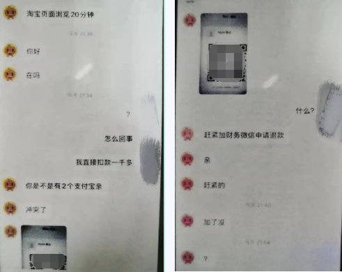 当隋女士质问“客服”怎么会扣款时,对方称可能是隋女士名下有两个支付宝账号存在冲突,导致被扣款,并又发送了一个二维码让隋女士添加“财务微信申请退款”。这一次,隋女士没有再次扫描二维码,而是选择报警,避免更大的财产损失。