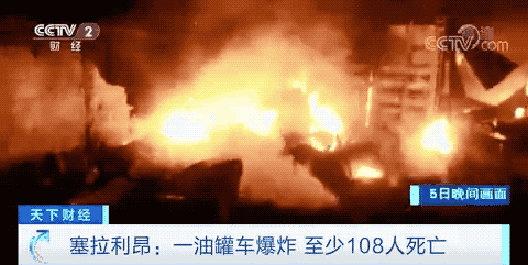 现场目击者说,一辆油罐车与一辆卡车相撞后漏油,附近居民哄抢泄漏的燃料。随后,该油罐车突然爆炸,现场火光四起。截至当地8日,事故死亡人数已升至115人。