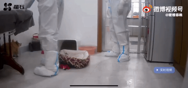 16时40分左右,傅小姐手机上的家中监控画面显示,两名身穿白色防疫服的工作人员,撬锁进入她的家中,手持铁棍敲打柯基“炒粉”的头部,随后两人一狗离开了监控范围,柯基“炒粉”生死未卜。随即她拨打了社区防疫人员和其他工作人员的电话,但都未取得任何答复。