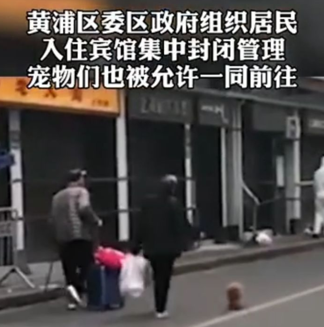 今年年初,上海报告3例本土新冠确诊病例。上海黄浦区分批将昭通路居民区(福州路以南区域)居民转移到宾馆集中隔离,而居民家中的宠物狗也可随行前往。