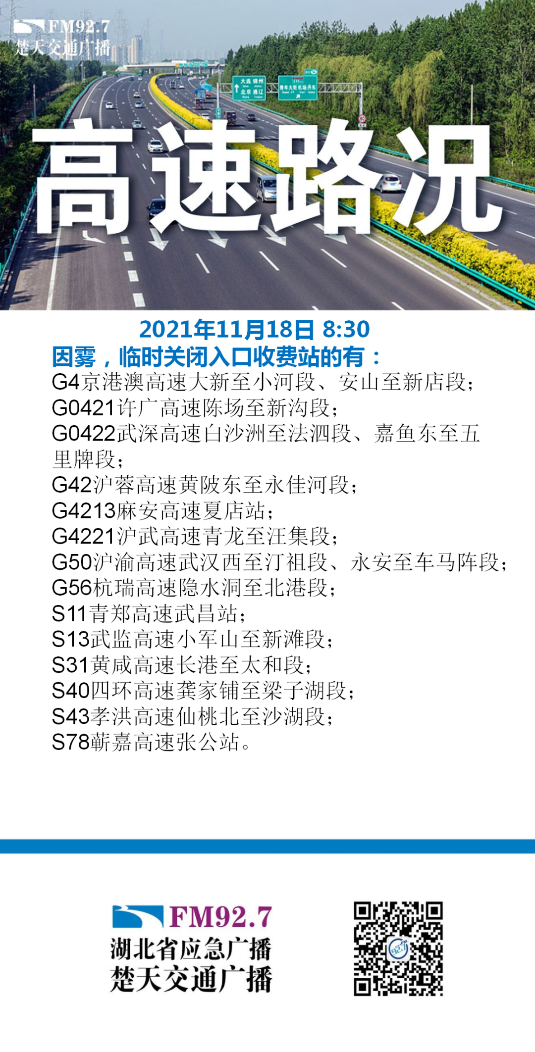 因大雾天气这些高速入口收费站关闭