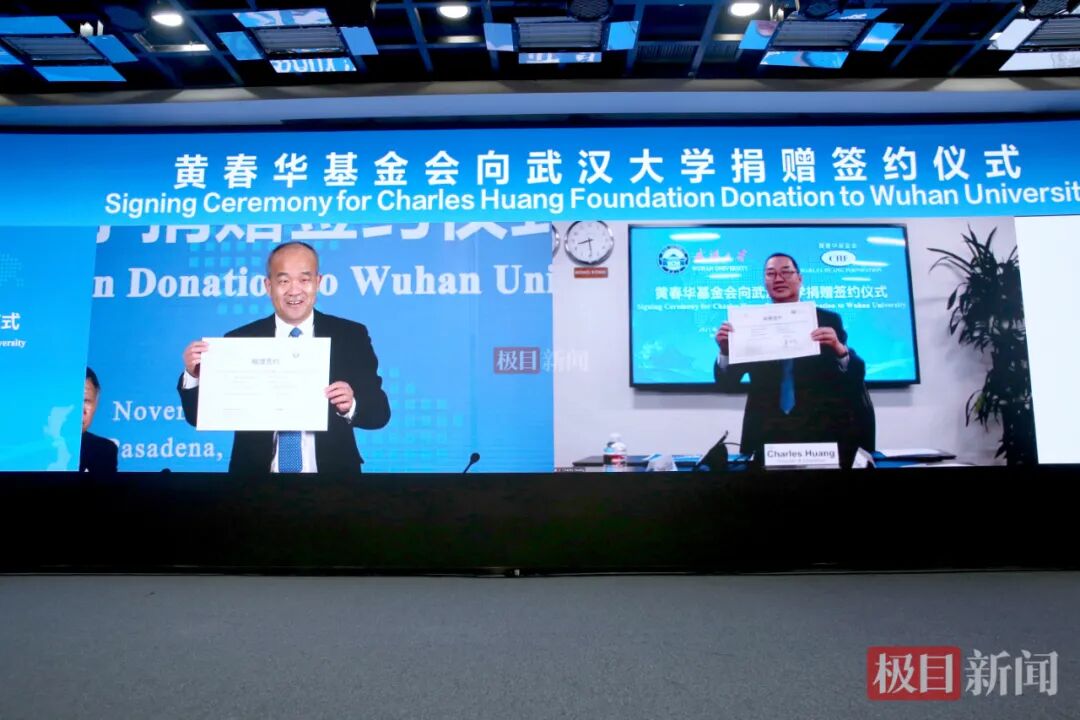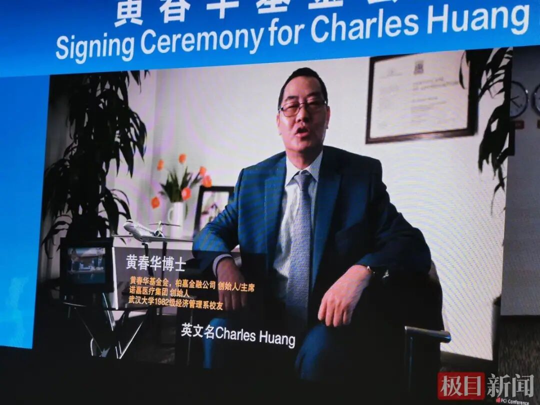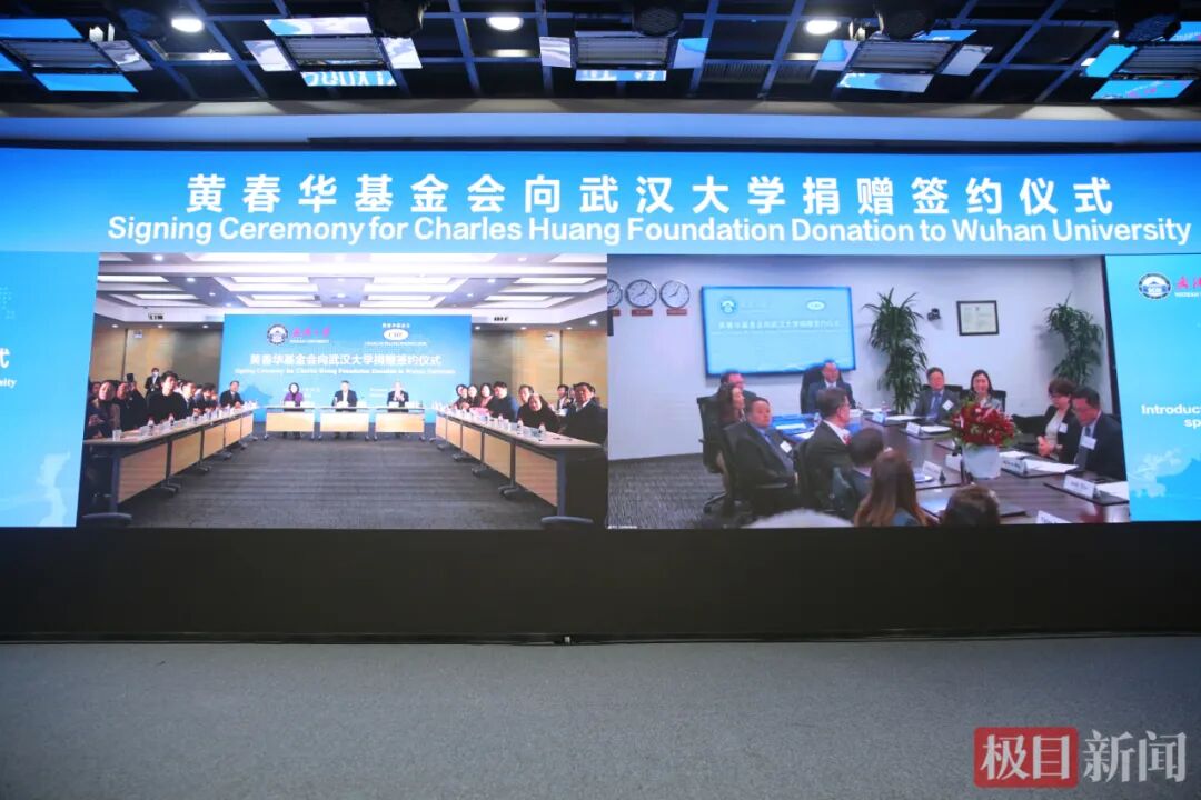捐赠签字仪式以国际连线方式在武汉大学及美国加利福尼亚州帕萨迪纳的黄春华基金会总部两个分会场举行。除武汉大学校领导,黄春华基金会代表,柏嘉金融公司、英诺医疗集团公司高管代表外,还邀请了黄春华在国内的亲友、大学时期的老师和同学代表、家乡黄陂区的代表等共同出席了签字仪式。