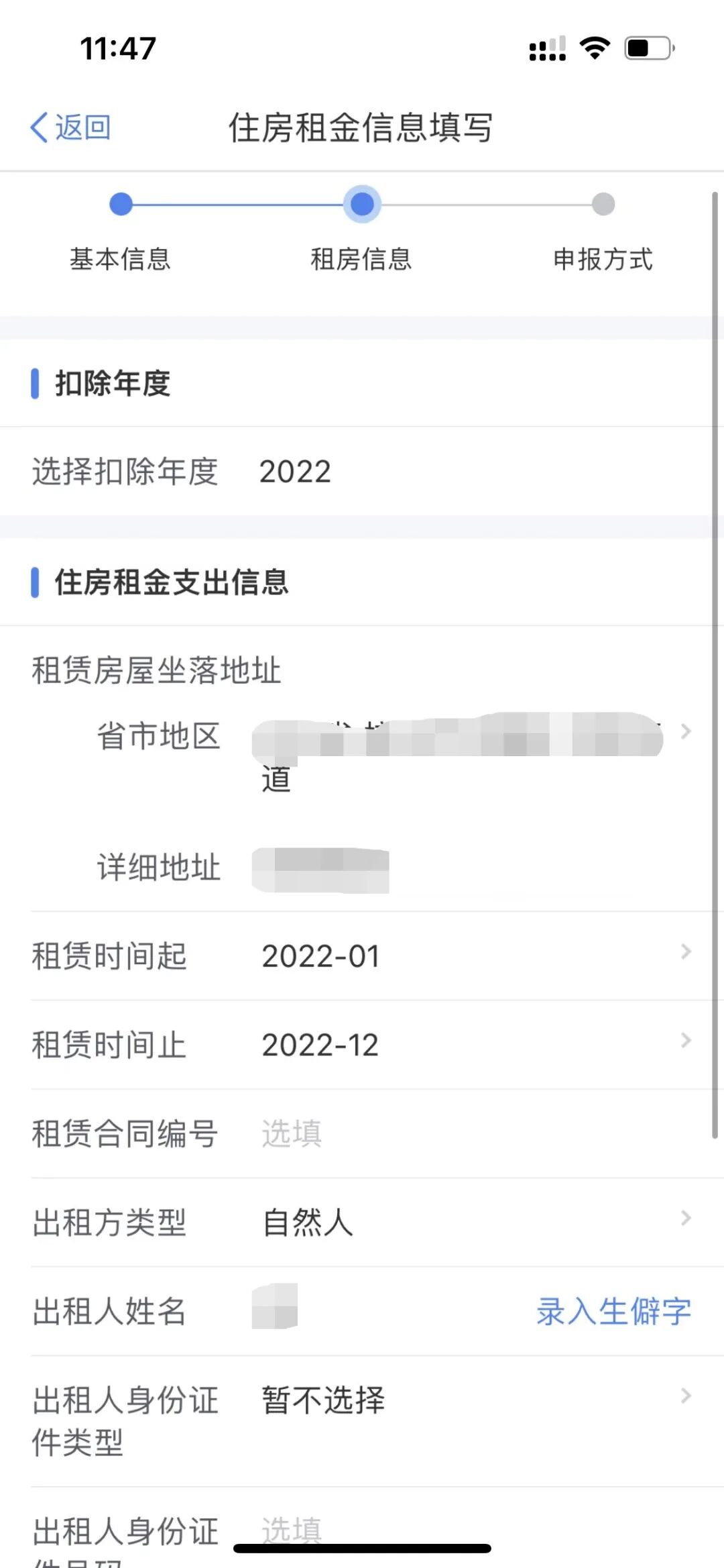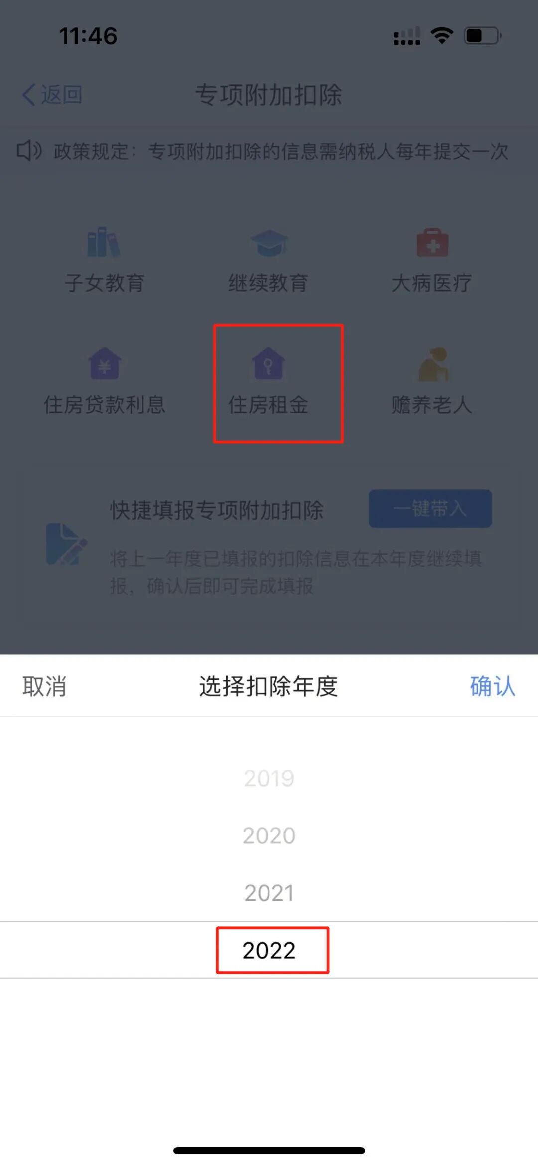 情况二:2022年想要新增专项附加扣除(以“住房租金”为例)