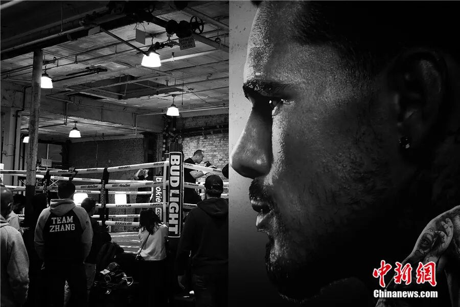 张志磊在一间拳击馆进行实战训练,场地和陪练均按时计费。他在美国的生活和训练场所均位于新泽西州东北部,这里毗邻美国职业拳击重镇纽约。中新社记者 廖攀 摄