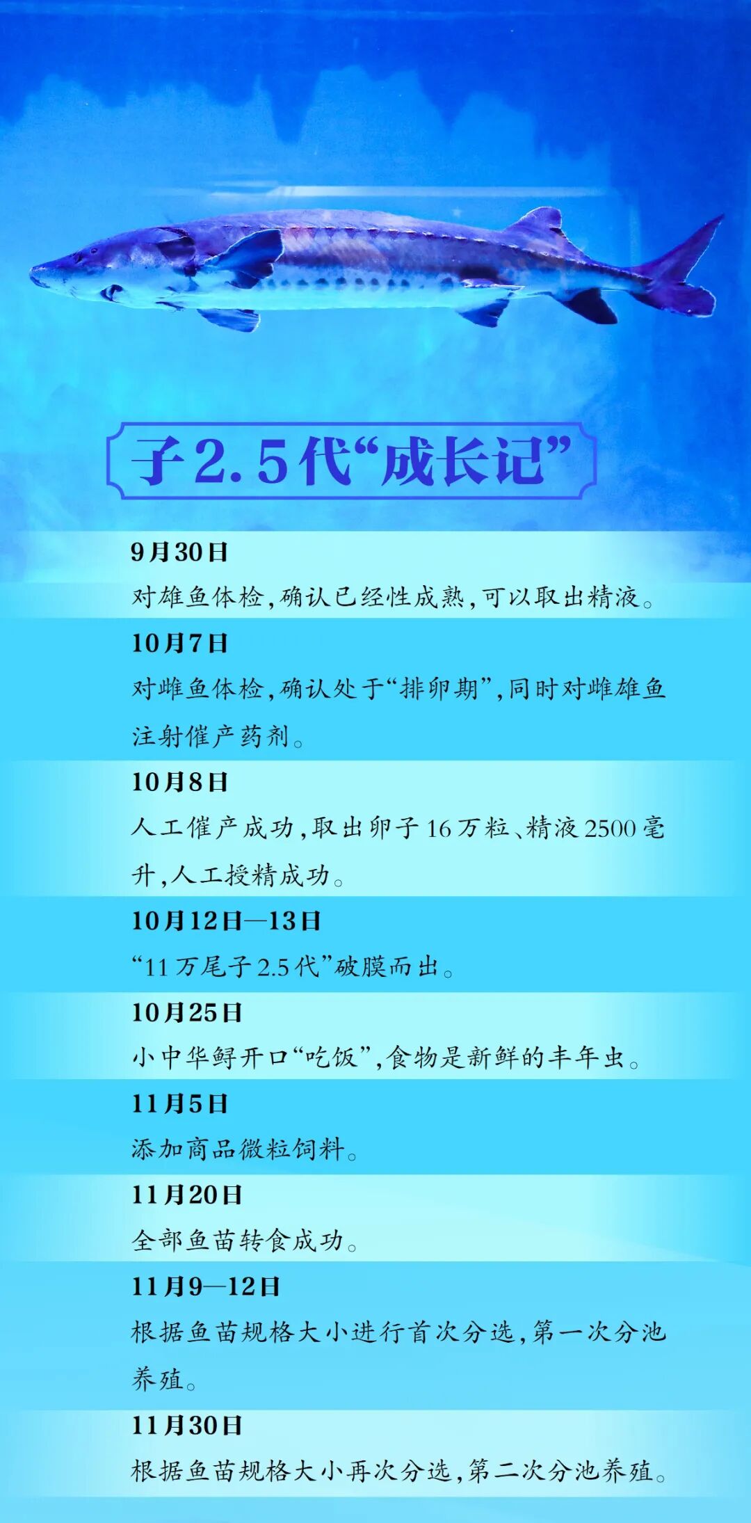 我国分别在1983年、2009年人工繁殖了中华鲟子一代、中华鲟子二代此次出生的子2.5代中华鲟是子一代“母亲”和子二代“父亲”的“人工结合”这也是国内首次使用中华鲟“子二代”个体开展中华鲟全人工繁殖