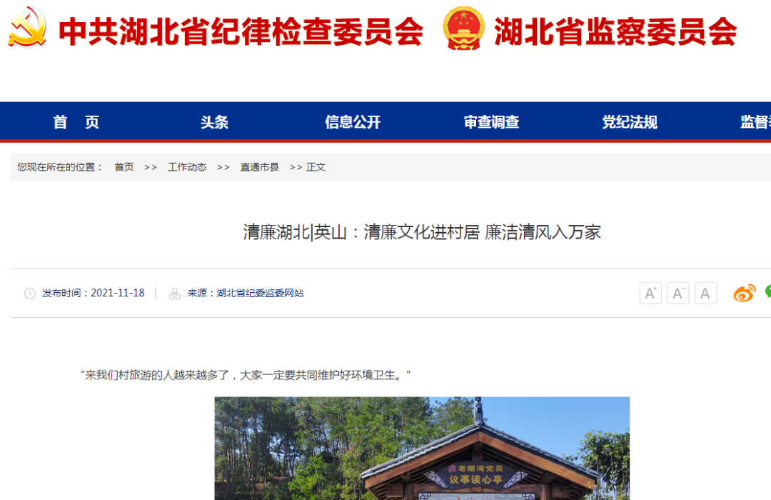 今年以来,英山县纪委监委将清廉村居建设与乡村振兴、推进基层治理等工作相结合,选取一批有一定基础和特色的村居,深入挖掘整理清廉元素、用好本土廉洁资源,打造清廉村居示范点,通过典型示范、以点带面,推动清廉村居建设在全县全面铺开。