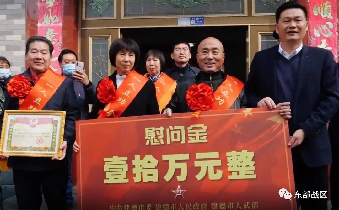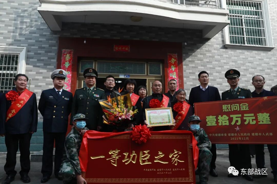杭州警备区、第73集团军某陆航旅、杭州市退役军人事务局、建德市人武部、建德市政府领导率军地慰问组来到一等功臣巫文重家中,为他父母送上“一等功臣之家”牌匾、证书和10万元慰问金。