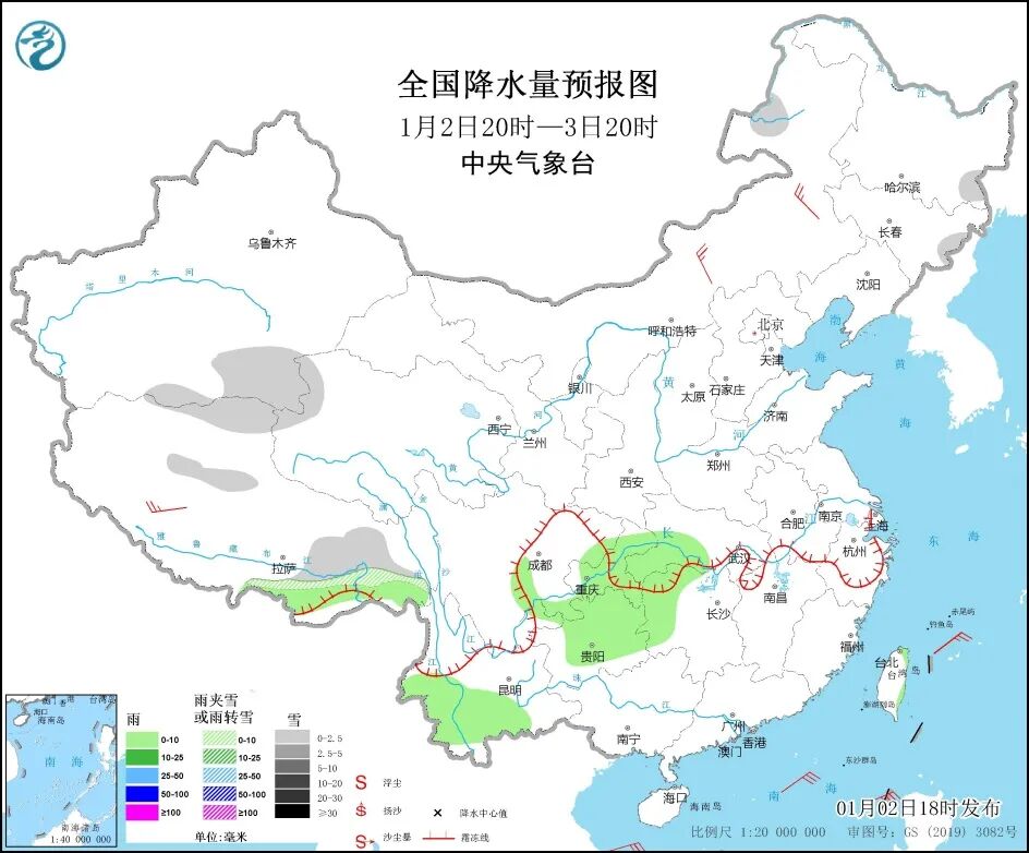 中央气象台预计,1月2日20时至3日20时,内蒙古、黑龙江、新疆、西藏、青海西部等地部分地区有小雪。
