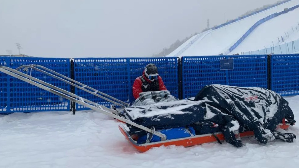 所以赛场飘雪后,工作人员会立刻清理赛道上的浮雪,能保证赛事正常进行,降低运动员受伤的概率。