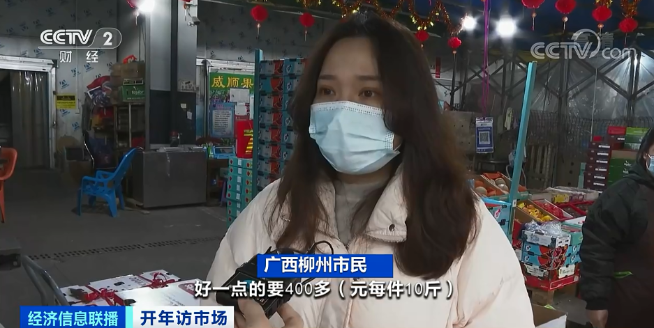 有广西柳州市民表示,节前买好一点的车厘子,每件10斤要400多元,现在每件10斤200多元。降价幅度比较大,准备采购一两箱回去,放在冰箱慢慢吃。