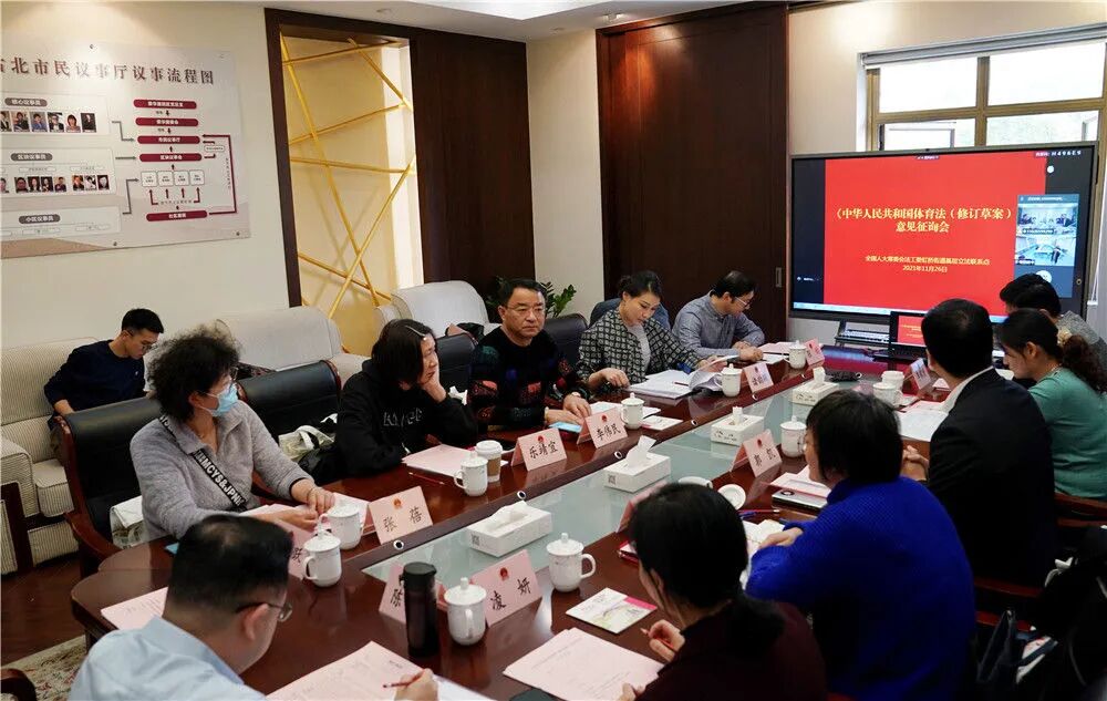2021年底,在上海长宁区虹桥街道基层立法联系点内,召开了一场由基层体育工作者、运动员、高校教师参加的座谈会,就体育法修订草案积极发表意见。