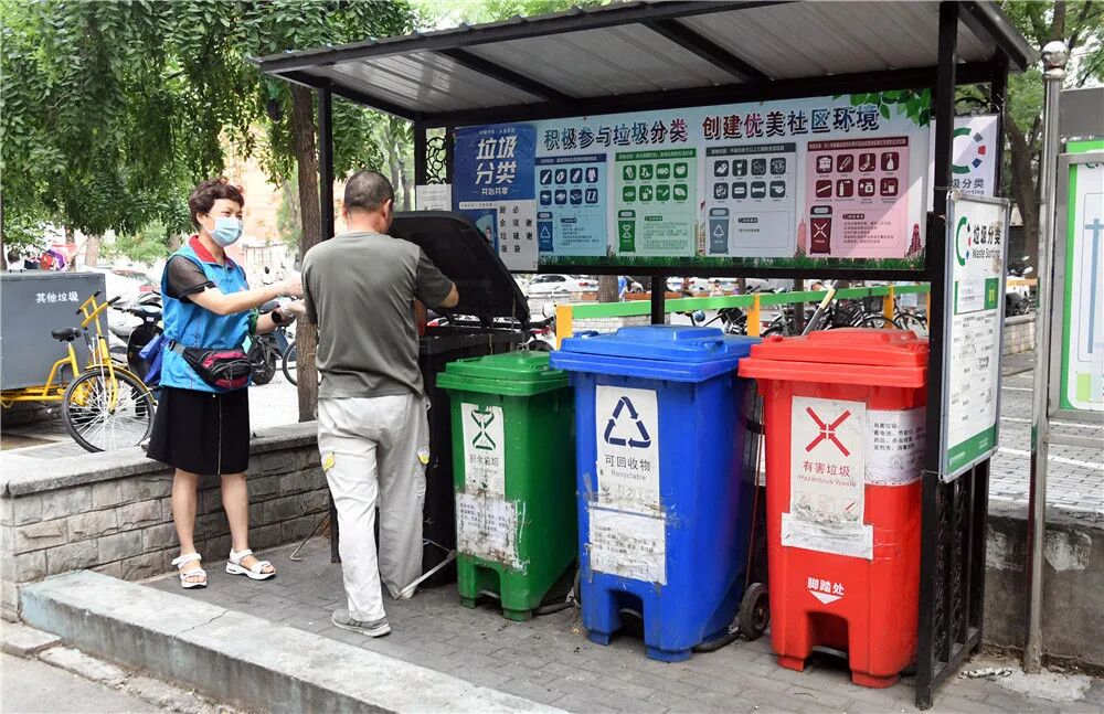 这是北京市海淀区蓟门里社区一处垃圾分类投放点(2021年8月11日摄)。新华社记者 任超 摄