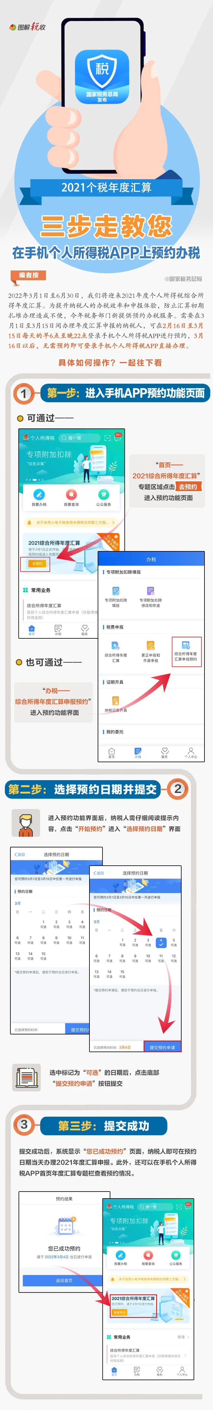 将于3月1日开始此次个税汇算有一个重要的变化就是推出了预约办税服务如需在3月1日至3月15日之间网上办理年度汇算可以从2月16日(今日)起通过手机“个人所得税”APP提前预约办税