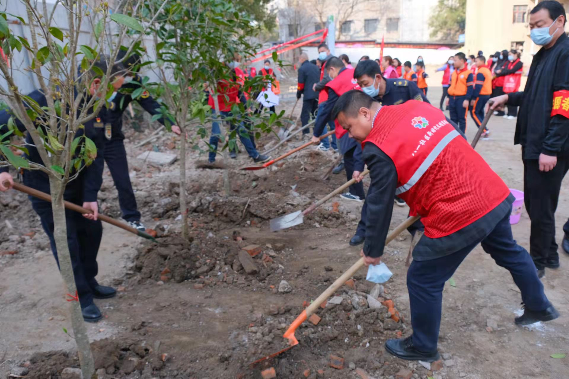 植树现场一片忙碌,却又井井有条。一树新栽益四邻,保护环境从你我做起,每种下一棵树苗都是一份对自然的承诺,改善生态环境,保护我们生存的家园。