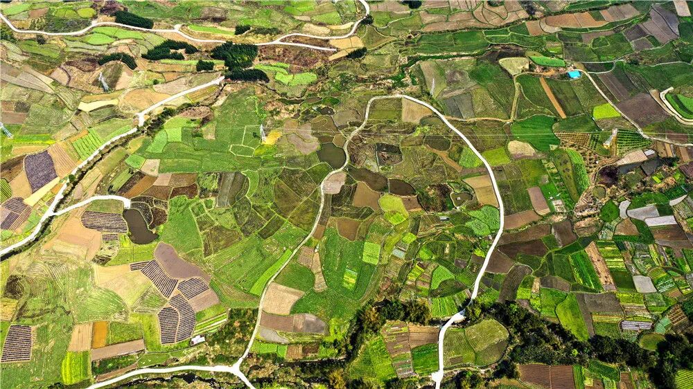 广西融安县潭头乡新桂村的春耕田园景色(3月17日摄,无人机照片)。新华社记者 张爱林 摄