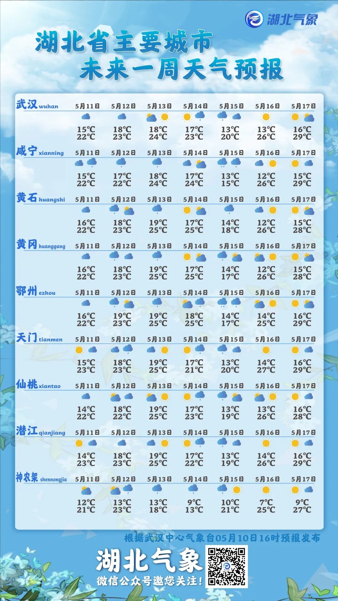 昨天湖北省降水减弱结束各地逐渐转为多云天气鄂东地区白天气温基本在20℃以下