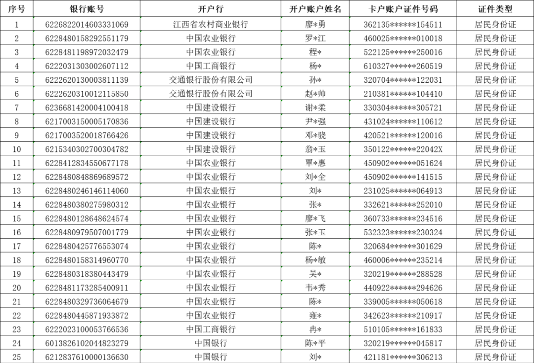 五、公示账户的权利人、利害关系人涉嫌犯罪的,或者帮助他人犯罪的,或者帮助他人逃避法律追究等违法犯罪情形的,将予以追究法律责任。