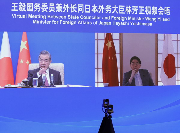 2022年5月18日,国务委员兼外长王毅同日本外相林芳正举行视频会晤。