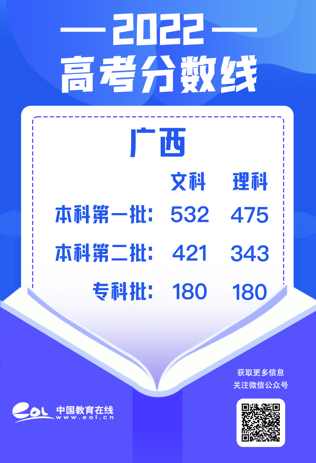 2022年江西省文史、理工类各批次文化录取控制分数线为: