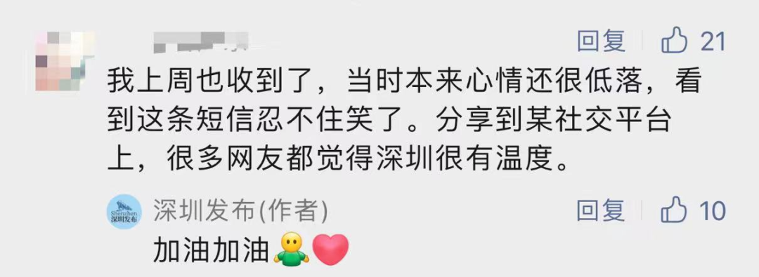 “虽然落榜了但依然收到了深圳市人社局的一条暖心短信心里特别感动所以就想在网上分享一下”