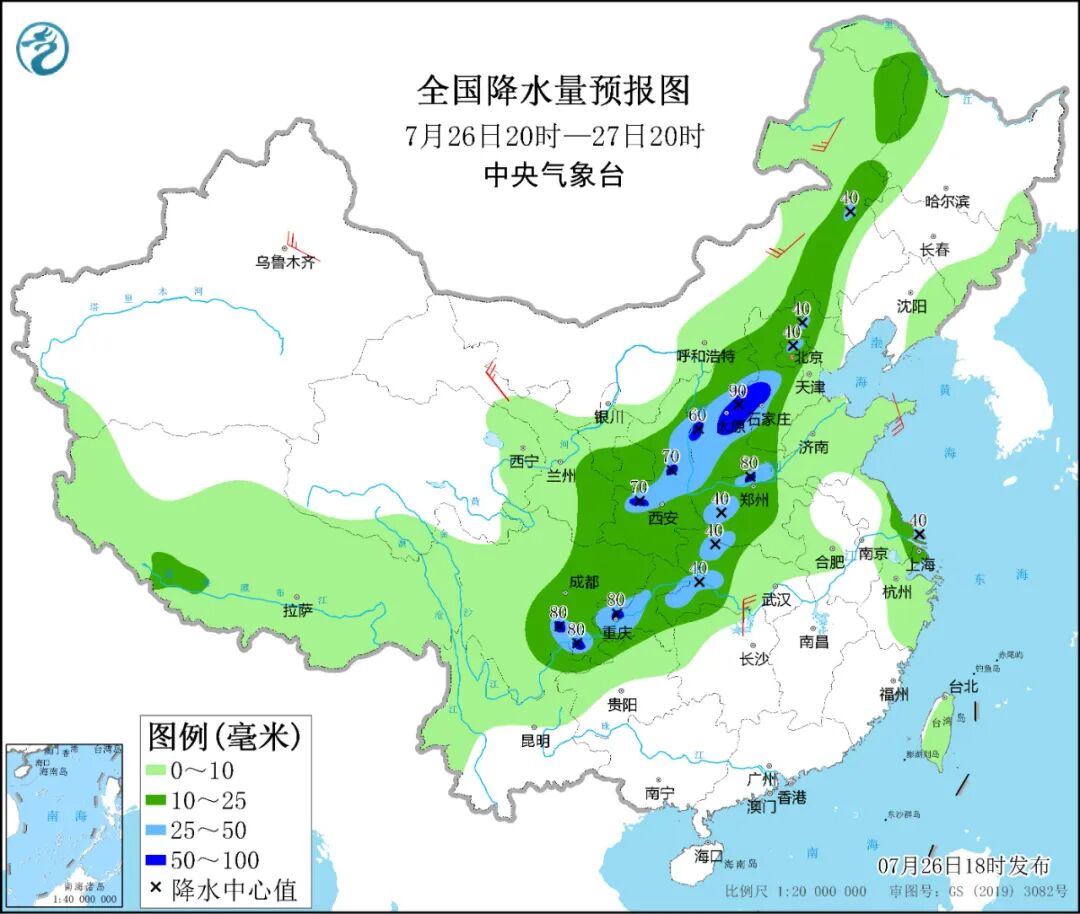 中央气象台26日18时发布强对流天气蓝色预警,预计26日夜间至28日,西南地区东部、西北地区东部、内蒙古中东部、华北、黄淮、东北地区西部等地将有一次明显降雨过程,部分地区有大到暴雨,局地大暴雨,伴有短时强降水、雷暴大风或冰雹等强对流天气。