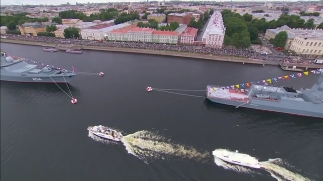 当地时间7月31日,俄罗斯圣彼得堡举行水上阅兵活动,纪念俄罗斯海军成立326周年。