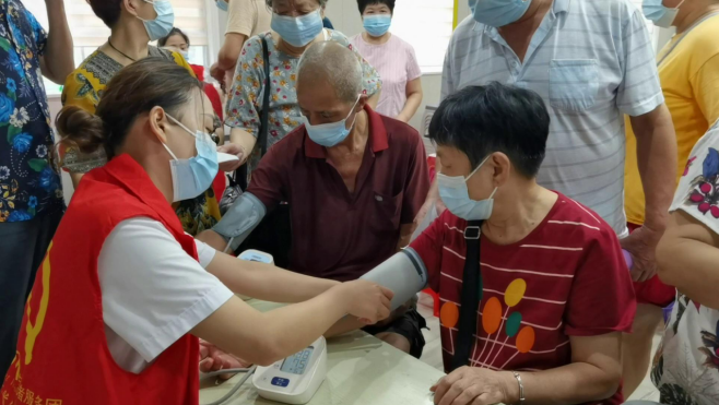 8月9日,黄州区赤壁街道八一社区联合黄州区脑血管病医院,在社区居家养老服务中心为居民提供免费体检服务。