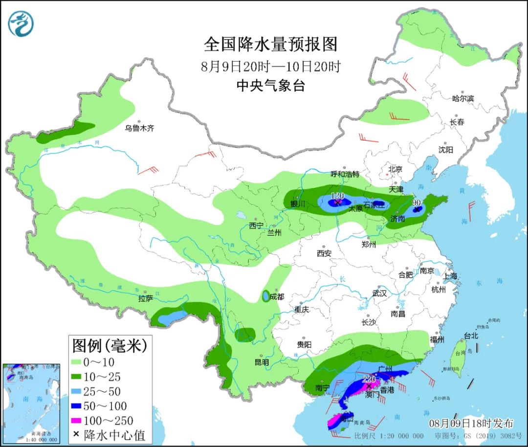 中央气象台9日18时继续发布暴雨蓝色预警,预计9日20时至10日20时,广东中南部、海南岛、广西东部、陕西北部、山西中部、山东中部等地有大雨或暴雨,其中,广东西南部、海南岛西北部、陕西北部、山西中部等地的部分地区有大暴雨。
