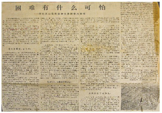 1958年1月31日,毛泽东在《工作方法60条》中,将“普遍推广试验田”列为第18条。2月18日,毛泽东在中央政治局扩大会议上,两次提到红安干部种试验田的问题。1958年12月7日,毛泽东在武汉接见了红安县干部种试验田的代表,称赞说:“这个办法好极了!”