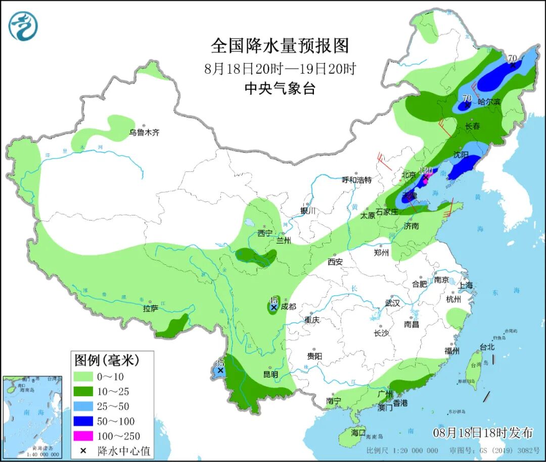 中央气象台预计,18日20时至19日20时,河北东部、天津南部、黑龙江中北部、吉林西部、辽宁东部和南部等地部分地区有暴雨或大暴雨。
