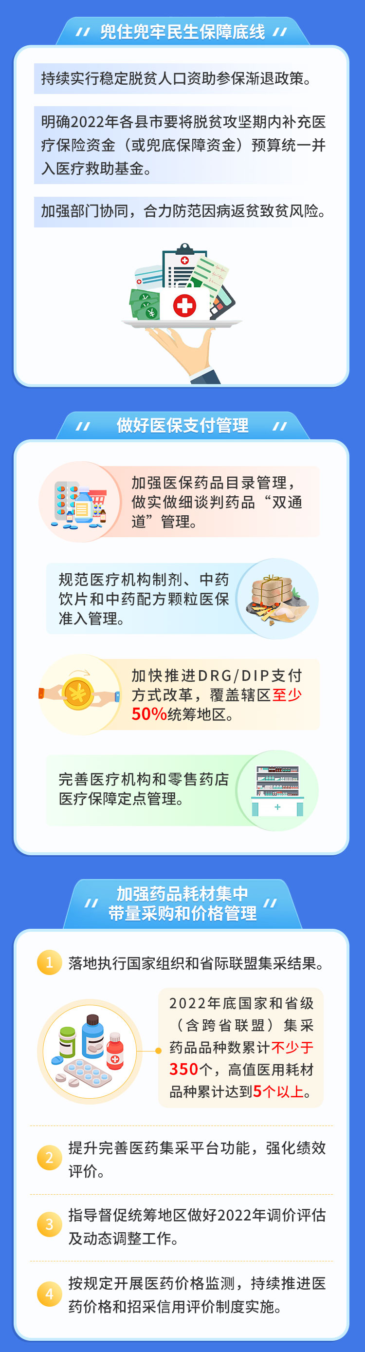 近日,省医疗保障局、省财政厅和国家税务总局湖北省税务局联合印发了《关于做好2022年城乡居民基本医疗保障工作的通知》,明确了我省城乡居民基本医疗保险人均财政补助标准达到每人每年不低于610元,个人缴费标准达到每人每年350元,进一步统筹发挥基本医保、大病保险和医疗救助三重制度综合保障效能。