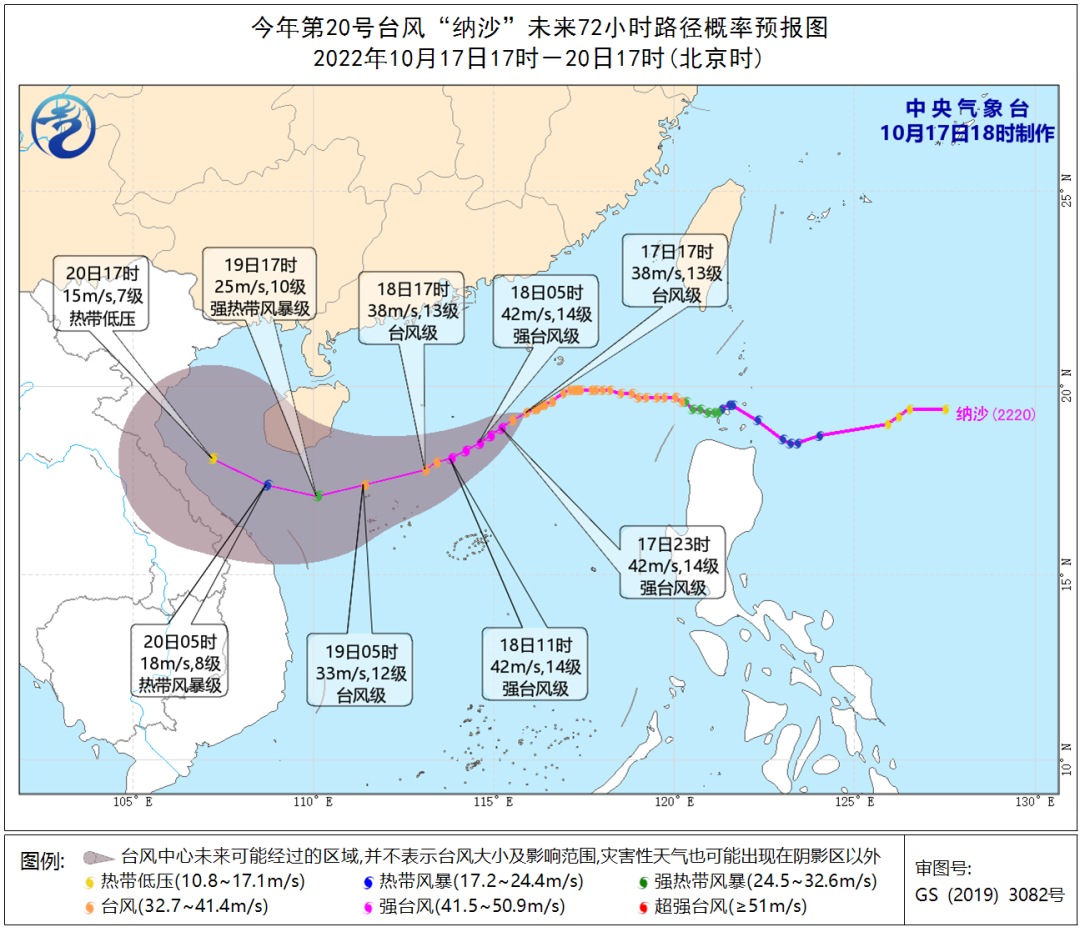 中央气象台17日18时继续发布台风黄色预警。受今年第20号台风“纳沙”影响,预计17日20时至18日20时,广东南部沿海、海南岛东北部、台湾岛东北部等地将有大雨。