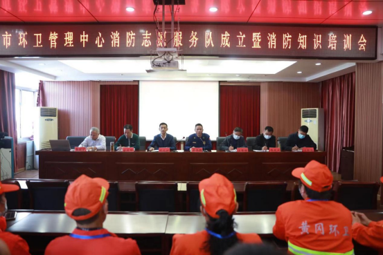 10月14日,黄冈市消防救援支队在市环卫管理中心组织召开消防志愿服务队成立仪式暨消防培训会,市消防救援支队副支队长章伟鹏、管理中心主任倪志祥以及环卫中心中层以上干部、部分一线职工代表、保洁车驾驶员代表,共计130余人参加了此次活动。