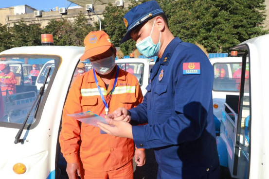 10月17日,从湖北黄冈市消防救援支队采访获悉,为进一步延伸消防宣传触角,扩大消防宣传覆盖范围,黄冈市消防救援支队积极拓展志愿者服务渠道,充分发挥环卫工人“分布面广、流动性强”等特点,依托市区1081名环卫工人、276台巡回保洁管理作业电瓶车成立黄冈市环卫消防志愿服务队,一千多名环卫工人消防志愿者在工作之余,积极开展消防安全宣传活动。