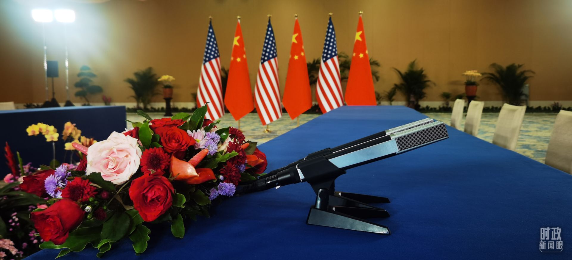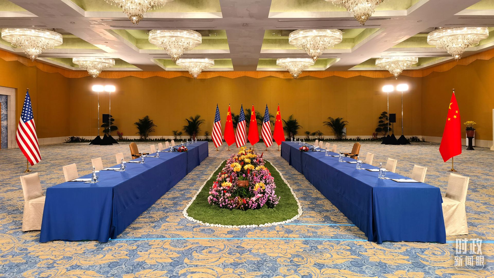 △中美元首会晤开始前的现场。(总台央视记者石丞拍摄)