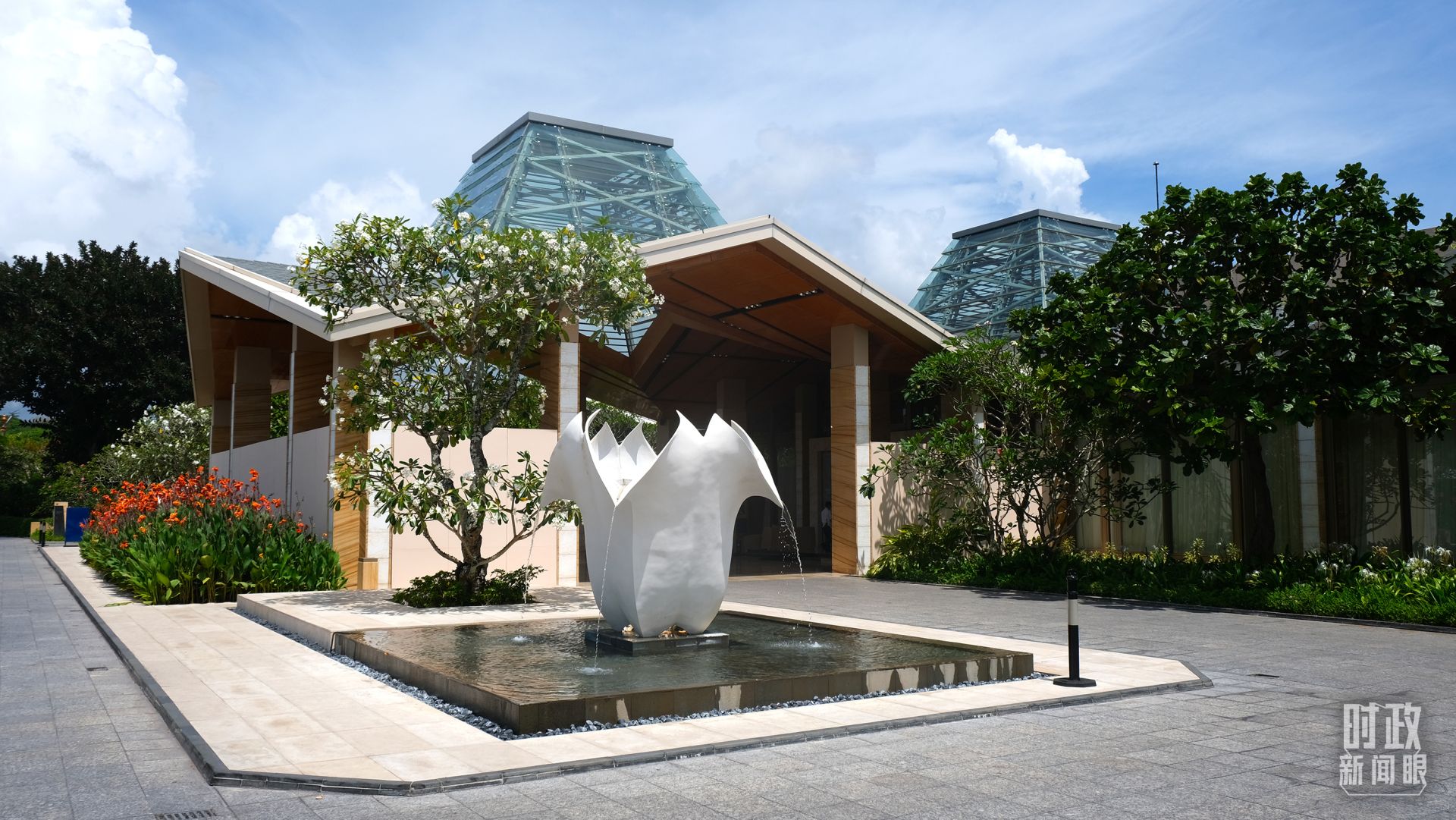 △会议楼门口正在绽放的鸡蛋花,花语是孕育希望。(总台央视记者韩锐拍摄)