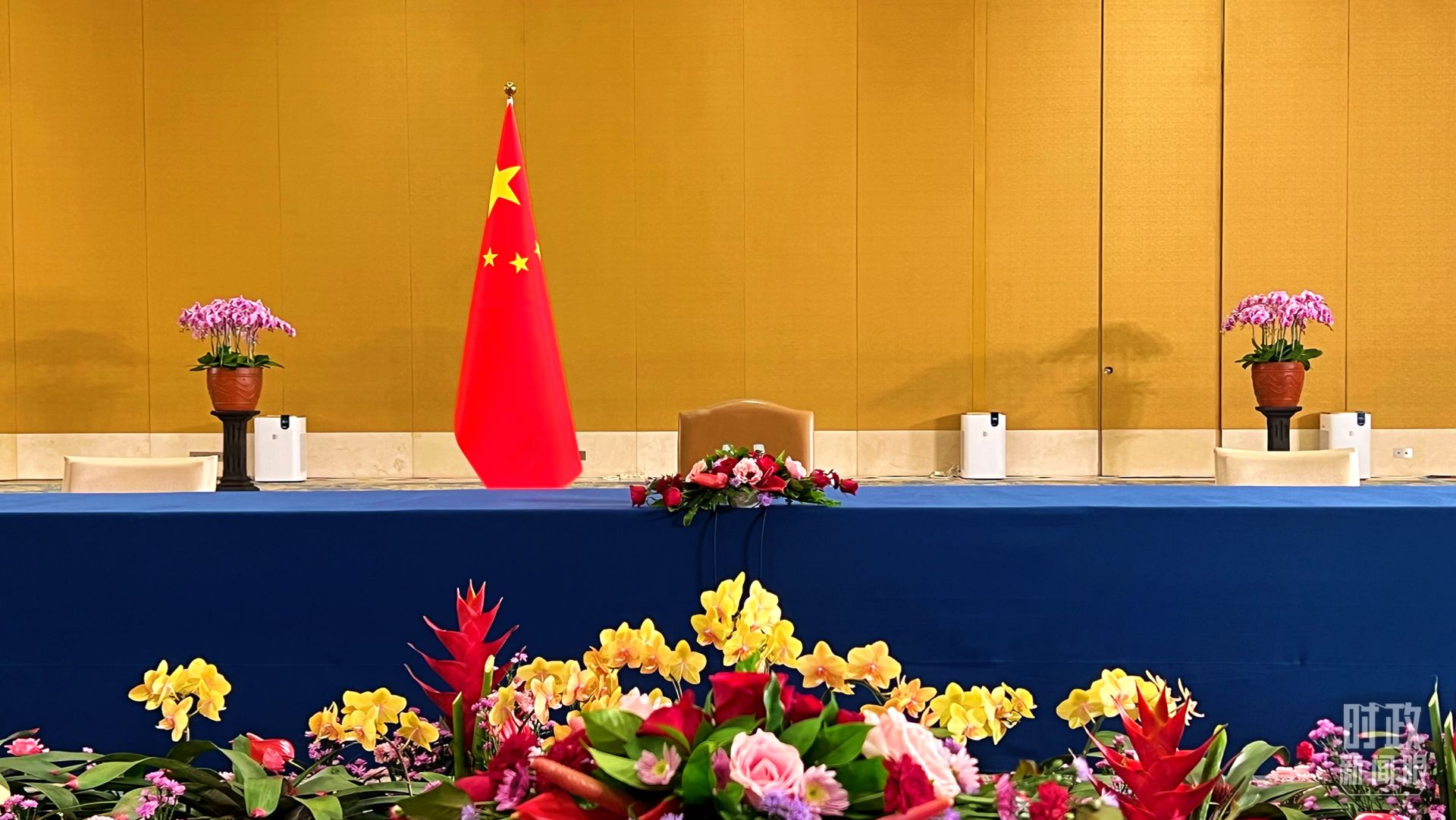 △中美元首会晤现场的中方座席。(总台央视记者程铖拍摄)