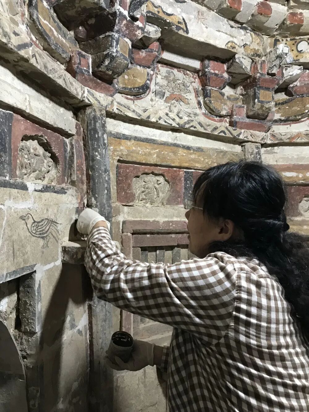 这是文保工作者在对墓葬进行保护修复。陕西省文物保护研究院供图