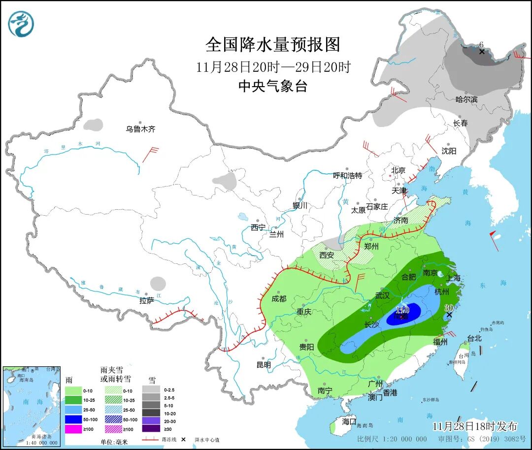 28日20时至29日20时,内蒙古东部、东北地区中北部等地的部分地区有小到中雪,其中,黑龙江北部等地部分地区有大雪。江淮大部、江南大部、江汉东部等地的部分地区有中到大雨,其中,江西中北部等地的部分地区有暴雨,局地大暴雨。