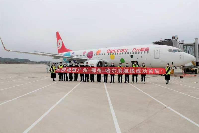 广州—鄂州—哈尔滨航线,由九元航空负责执飞,使用机型为波音737-800。