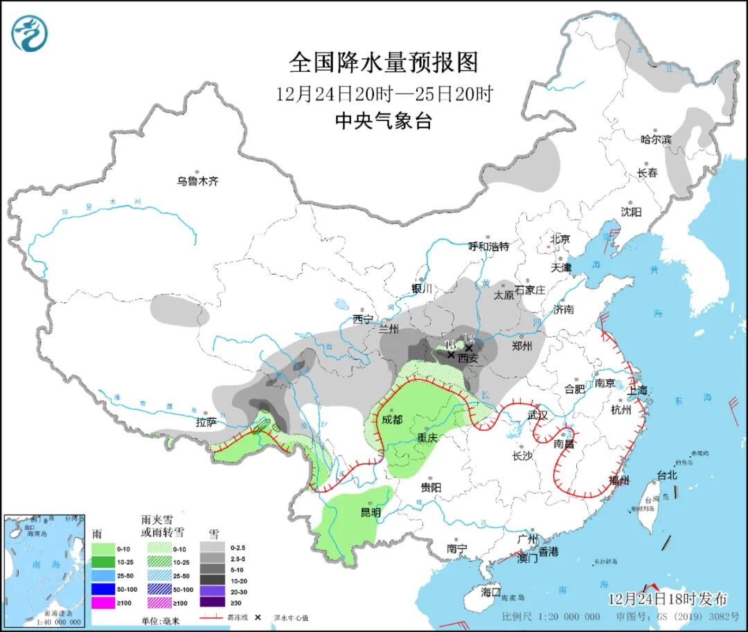 中央气象台预计,24日夜间至27日,受弱冷空气影响,西北地区中东部、内蒙古中西部、华北西部、西南地区东部将有4~6℃降温,局地降温幅度可达8℃以上。24日夜间至25日,青藏高原东部、西北地区东部、华北西南部、黄淮西部、湖北西部、四川西部和北部等地有小到中雪或雨夹雪,局地大到暴雪;四川盆地、贵州、云南、湖南西部等地有小雨。