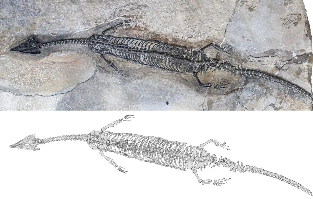 日前,我国科研人员在云南罗平县中三叠世海相地层(2.44亿年前),发现一种新的肿肋龙科爬行动物,代表了多指节型鳍龙类最早出现的化石记录,将其命名为“奇异罗平龙”。