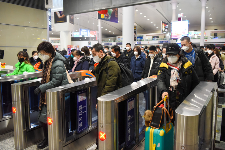 1月7日,旅客在合肥南站进站乘车。新华社记者 周牧 摄