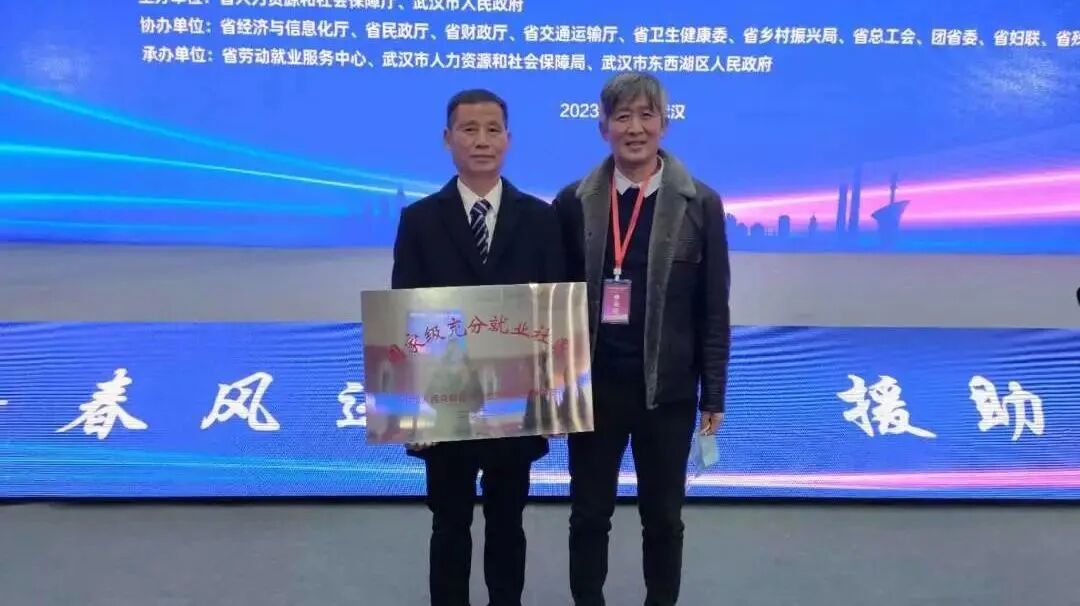 湖北省2023年“春风行动暨就业援助月”启动仪式圆满落幕,武穴市刊江街道刘桂社区荣获国家级充分就业社区奖牌。
