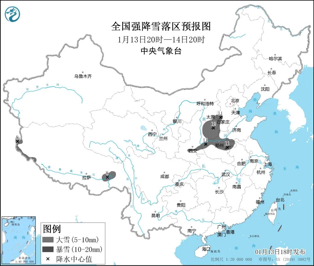 中央气象台13日18时继续发布暴雪蓝色预警,预计13日20时至14日20时,陕西中部、山西中南部、河北西部、河南中北部以及西藏东南部和西部等地部分地区有大雪,其中,河北西南部、河南北部等地的局部地区有暴雪。