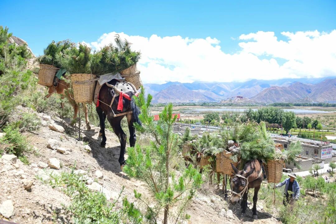 △2022年5月,西藏拉萨河流域造林队员运送樟子松树苗。