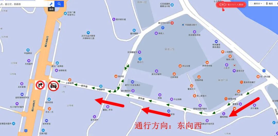 1、红金龙大道新华书店路口禁止机动车辆驶入新华巷,需进入车辆请绕行红安二桥西通行;