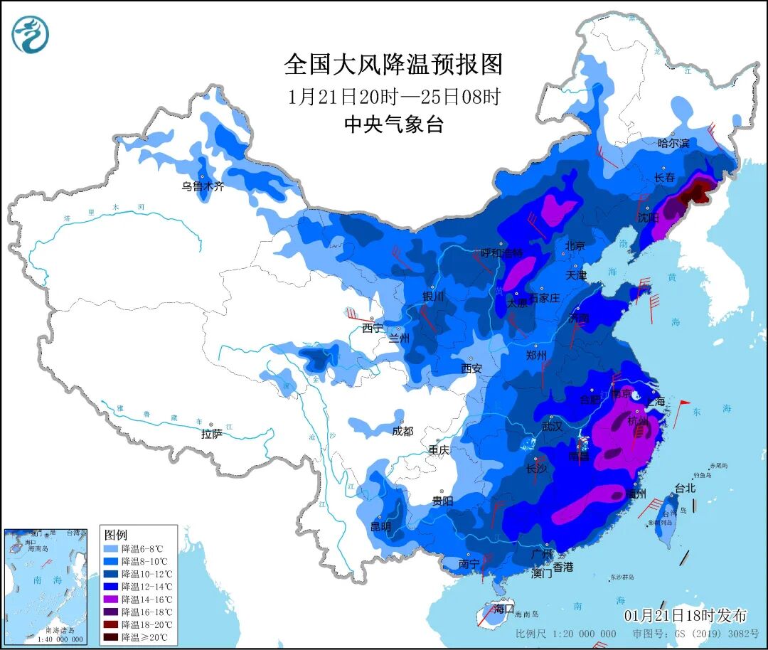 中央气象台21日18时发布寒潮蓝色预警,受较强冷空气影响,预计21日20时至25日8时,中东部大部地区气温下降6~10℃,华北北部、东北地区东部、江南东部等地气温下降14℃,局部超过18℃。