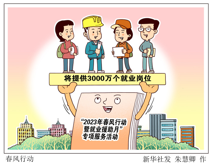人社部会同工信部、民政部等10部门联合推出的“2023年春风行动暨就业援助月”专项服务活动,预计将为劳动者提供3000万个就业岗位。