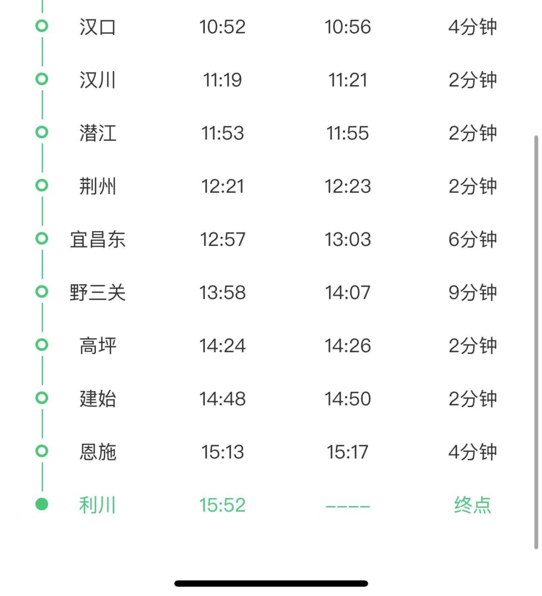 3、具体时刻表如下:上海虹桥-利川D4836/7次列车